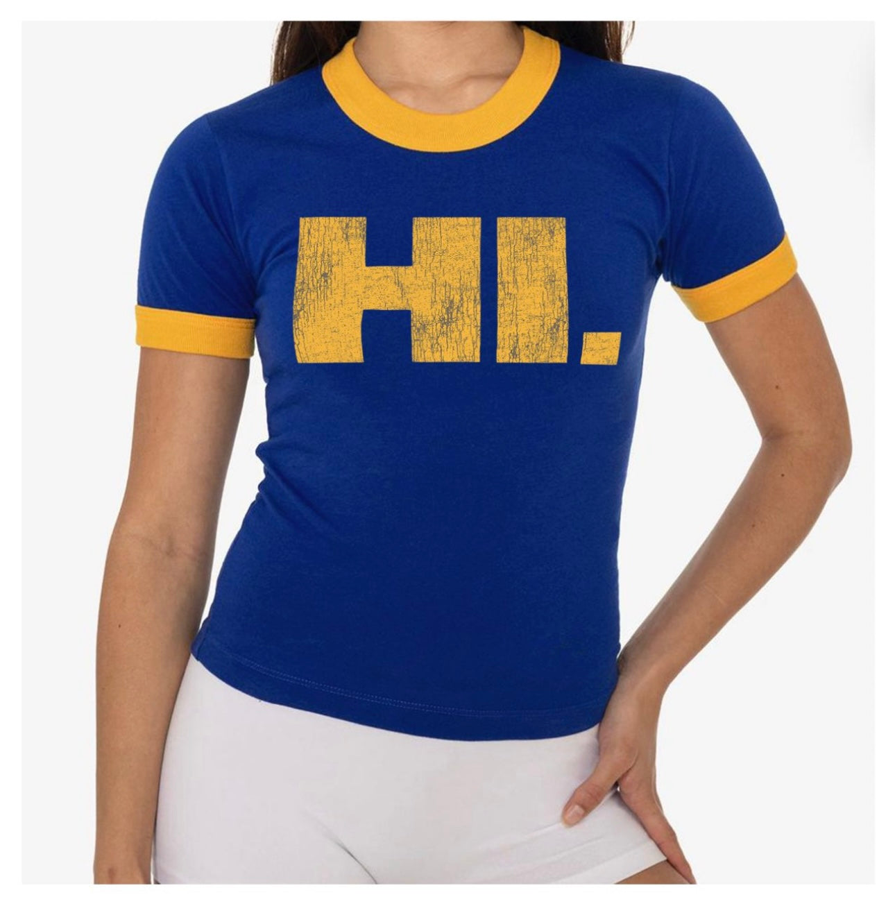 "HI!" Ringer Tee (Blue/Yellow)